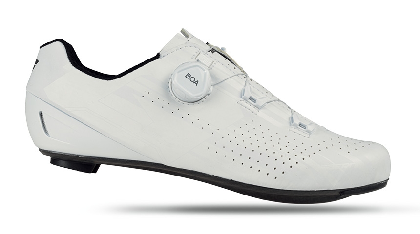 EPSライトウェイト・フルカーボンソール10.0(剛性指数10.0) 軽量性と剛性を追求したフルカーボン製ソールです。きわめて薄いカーボンソールは足裏とペダルの距離を最小限に保ち、ペダリングパワーを無駄なく最大限に伝達します。通気路を2カ所設け通気性も完璧です。つま先と踵のラバーパッドで歩行時の滑りを防止します。踵のラバーパッドは交換可能です。すべてのクリップレスペダルに対応。 |