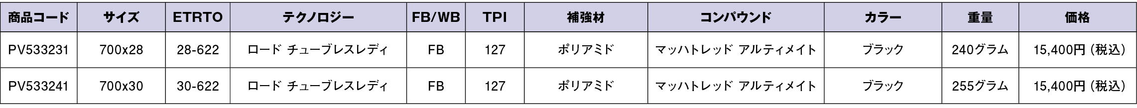 転がり抵抗を10%削減し、28mmバージョンでは重量をわずか 240g に抑えました。