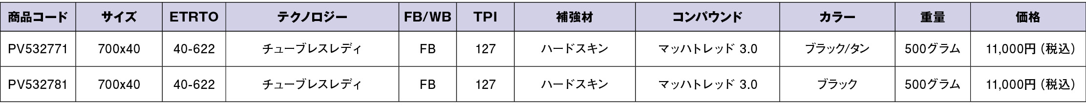 カラカルは、700x40mmのサイズで、タンウォールとブラックのカラーオプションがあります。タイヤ重量は475gです。