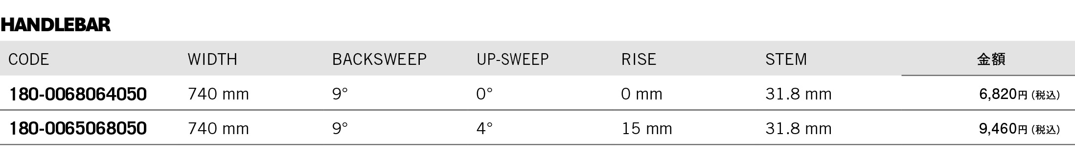 COMET Ø31.8 FLAT / LOW RISER 15 HANDLEBAR
