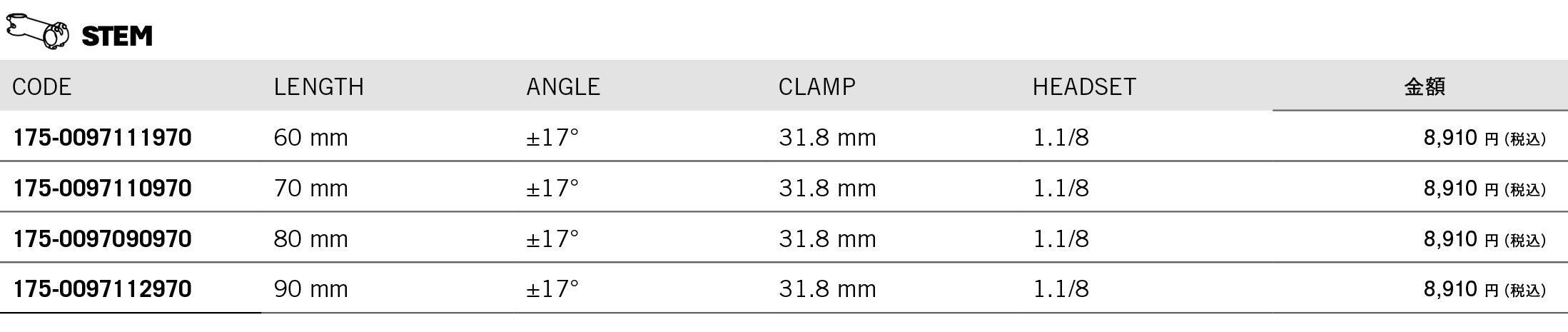 税込価格¥8,910