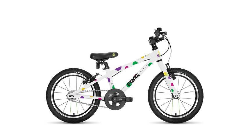 | Saddle | Frog Bikes child-specific saddle (small), steel rails |