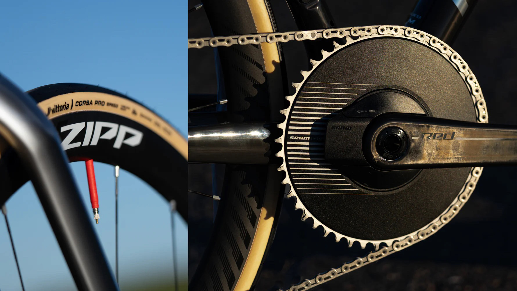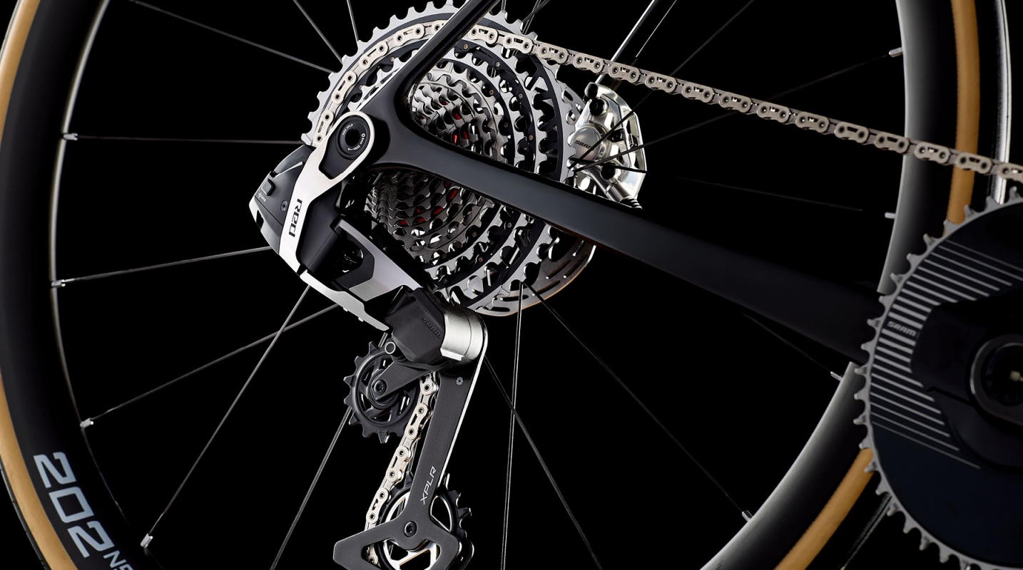 13速SRAM RED E1 XPLRグループセット、ZIPP 202 NSWホイール、そしてVision一体型ハンドルバーが、パフォーマンス、軽量性、そして高級感を完璧なバランスで実現します。