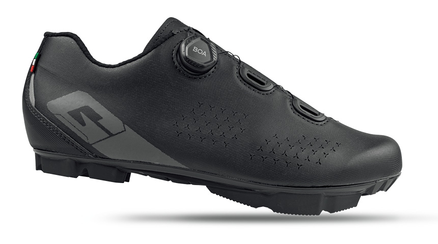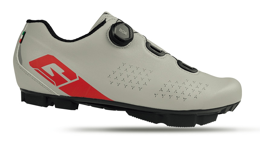 MTB 2デンシティ・ソール7.0(剛性指数7.0) ガエルネが独自に研究開発したMTB用ソールです。ナイロンとガラス繊維の複合素材を使用し、耐久性があり軽量で薄型です。極めて高いグリップ力と安定感を誇るトレッドは、あらゆる路面状況に対応します。更にグリップ力が必要な場合は、つま先に2カ所、ネイルを取り付けられます。 |