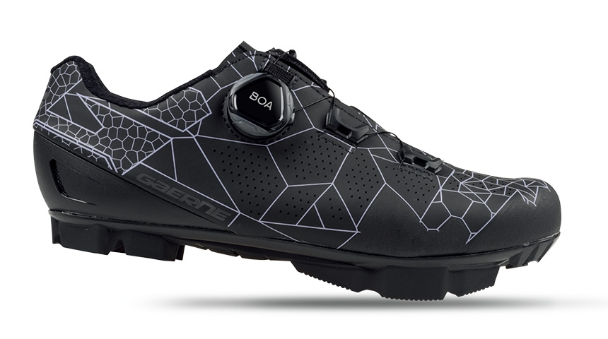 MTB 2デンシティ・ソール7.0(剛性指数7.0) ガエルネが独自に研究開発したMTB用ソールです。ナイロンとガラス繊維の複合素材を使用し、耐久性があり軽量で薄型です。極めて高いグリップ力と安定感を誇るトレッドは、あらゆる路面状況に対応します。更にグリップ力が必要な場合は、つま先に2カ所、ネイルを取り付けられます。 |