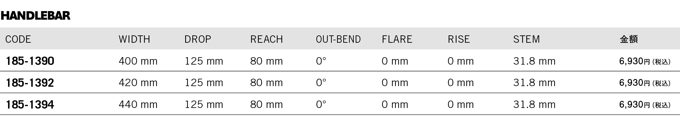 • Ø31.8mm x W400, 420, 440mm (c-c)