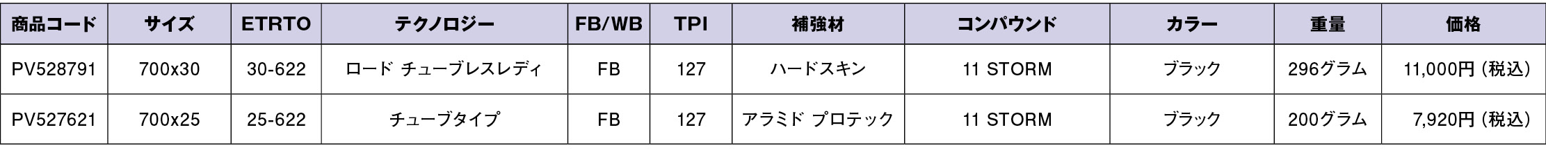 STRENGHTS軽量性とアラミド耐パンク層の適切なバランスにより11ストームコンパウンドはグリップ性能と耐久性を兼ね備えました。重量200グラムから。 |
