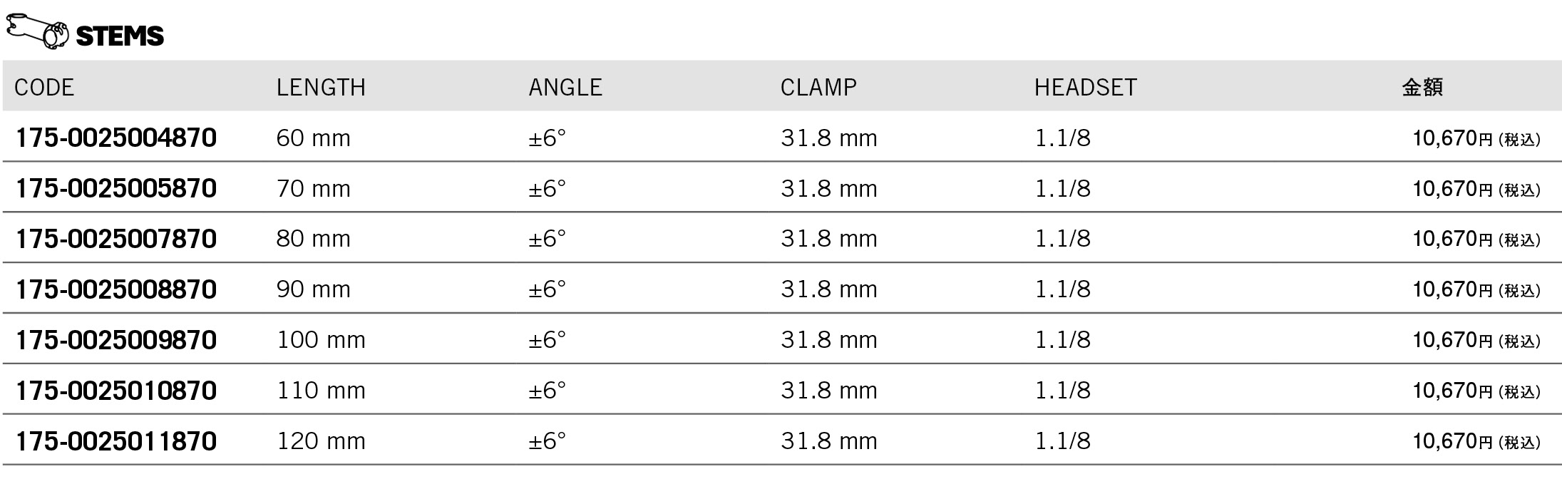 • ±6° x L60, 70, 80, 90, 100, 110, 120, 130mm