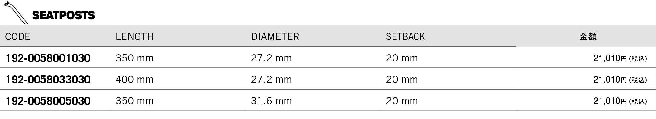 • L400mm x Ø27.2, Ø31.6mm (Di2 Compatible)