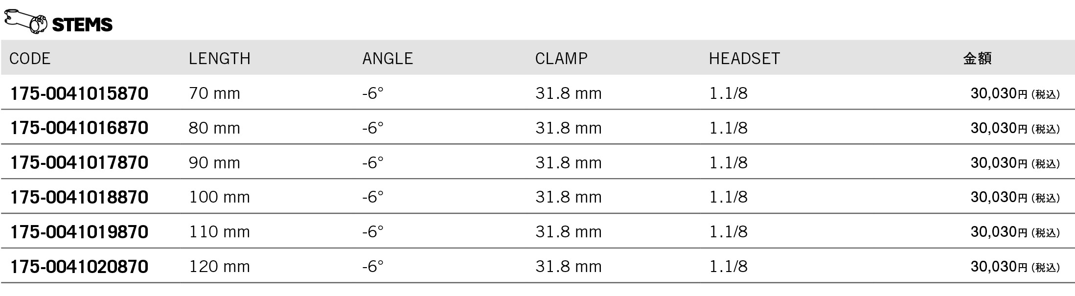 • -6º x L60, 70, 80, 90, 100, 110, 120, 130mm
