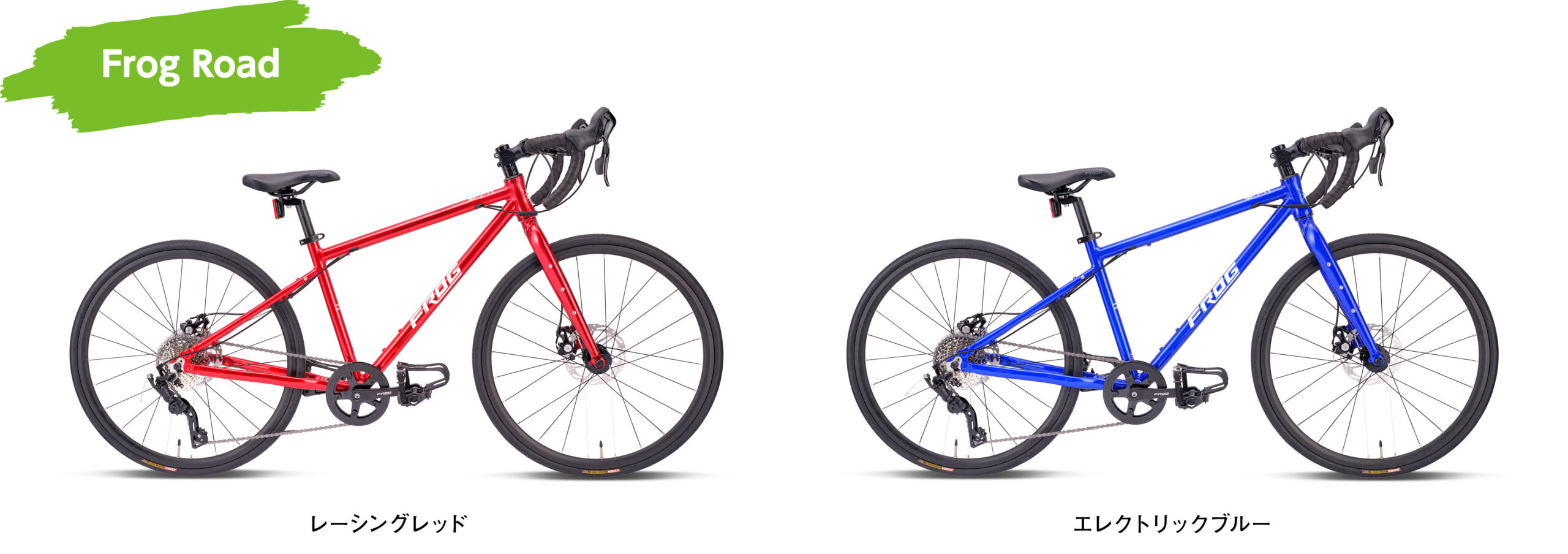 Frog Road シリーズは、成長段階にある子どもたちが安全に、楽しく、そして本格的にロードサイクリングを学べるよう設計されたジュニア専用ロードバイクです。軽量アルミフレーム、子どもの体格に最適化されたジオメトリー、操作しやすい専用コンポーネントを採用し、「はじめて」から「本格志向」までを確実につなぎます。